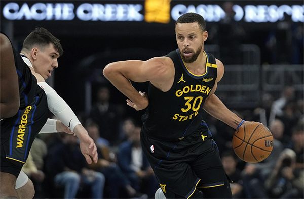 主场对阵残阵灰熊,第一节库里登场11分钟,面对严防死守仅仅出手1次,队友加起来出手28次,库里首节靠罚球拿到2分以及抢到4个篮板,库里吸引包夹,勇士多点开花,首节29-28领先灰熊1分。
