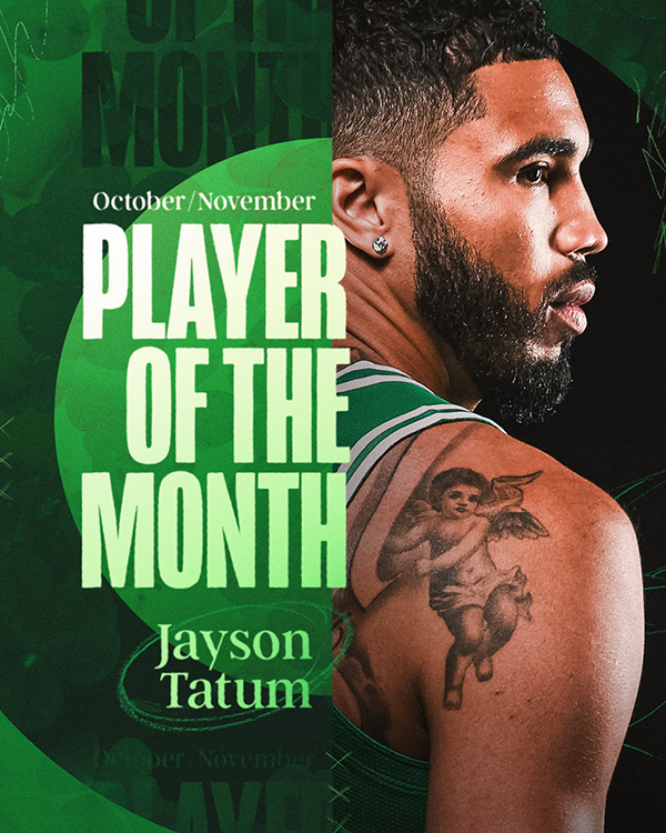 在NBA新赛季10-11月比赛期间,塔图姆带领凯尔特人拿到16胜3负的战绩,场均能够轰下28.7分8.5篮板5.8助攻;凭借出色的表现,塔图姆荣获新赛季第一个东部月最佳大奖,这是塔图姆生涯第5次获此殊荣,凯尔特人官方第一时间晒海报祝贺塔图姆。