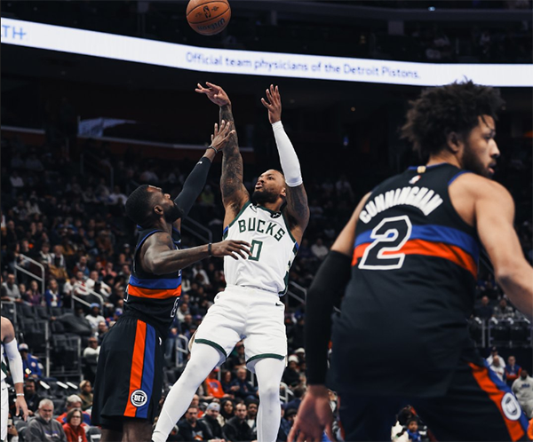 来源:360直播吧12-04 16:37360直播吧讯北京时间12月4日,NBA杯小组赛东部B组雄鹿客场击败活塞,豪取7连胜的同时小组赛4胜0负锁定小组第一,正式晋级杯赛八强;字母哥三节打卡下班,11投10中、罚球12中8高效轰下28分8助攻7篮板,正负值+18;利拉德17投9中、三分11中5拿到27分4篮板5助攻,雄鹿双巨合砍55分率队双杀活塞并且晋级杯赛八强。