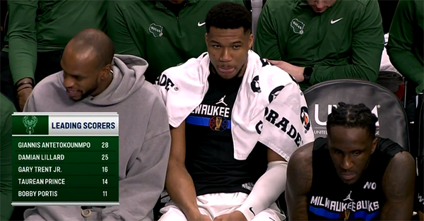 NBA杯小组赛关键一战,第一节字母哥里突外投,单节3中3高效拿到9分3篮板2助攻,利拉德的手感也十分火热,而且三分神准,首节5中4轰下12分,在雄鹿双巨的带领下,雄鹿首节36-31领先5分。