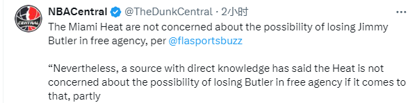 Barry Jackson还报道称,尽管如此,一位知情人士表示,热火并不担心在自由球员市场上失去巴特勒的可能性,部分原因是没有其他球队有足够的薪金空间在没有热火帮助的情况下直接签下巴特勒。