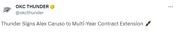 目前雷霆队已经官宣与卡鲁索续签多年合同。