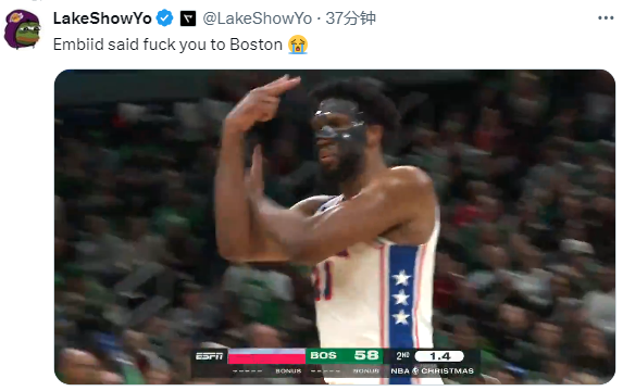 第二节,76人在对攻中继续扩大领先,更是打出9-0攻势瞬间领先到16分,随后塔图姆强硬2+1以及连中三分带队反扑;面对绿军的反击,恩比德连续单挑霍福德——后仰中投以及命中两记三分;据美媒报道,恩比德命中准压哨三分后怒骂凯尔特人,半场打完76人66-58领先8分,这一节恩比德4中4拿到10分,塔图姆单节11分。