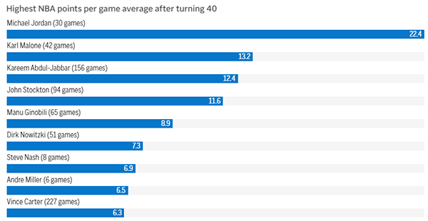 NBA历史上40岁后单赛季场均得分排名——