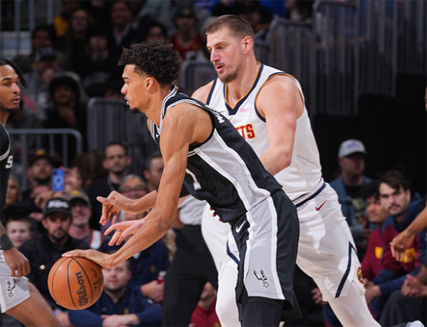 下半场,马刺开场被掘金打出16-4的反击高潮,马刺被反超陷入被动,文班因吃到第4次犯规被迫下场,三节打完马刺87-90落后3分;约基奇大杀四方,单节13投7中爆砍18分4篮板3助攻,这一节文班5中2拿到5分3篮板,单节3次失误。