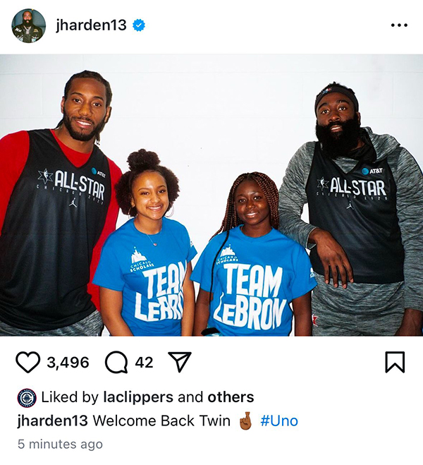 今日赛前,哈登专门更新推特,晒昔日与小卡在全明星赛场上的合影,配文写道:欢迎回归,兄弟!