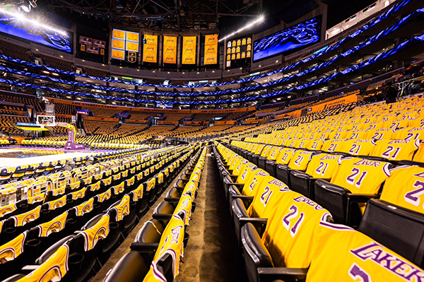湖人此前的两场比赛,因为洛杉矶山火而被迫延期,如今时隔5天,湖人比赛终于回来了,今日湖人将在主场大战马刺,湖人将退役库珀的21号球衣,现场已经铺满了库珀的21号球衣,形成一片金色海洋。