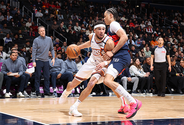 太阳客场险胜联盟倒数第一的奇才,太阳新秀邓恩打出生涯之夜,本场得分和篮板都创生涯新高,生涯首次拿到两双的数据。