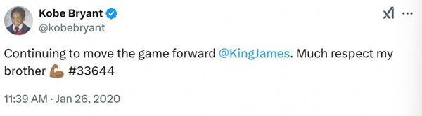 科比逝世五周年祭,湖勇名宿深情缅怀,最后推文定格詹皇荣耀瞬间