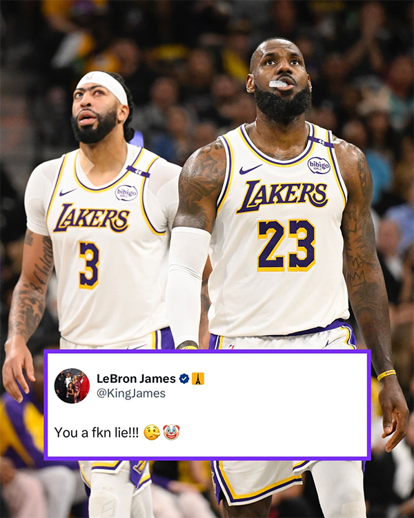 昨天浓眉与东契奇互换的大交易确定之后,有记者称詹姆斯对浓眉越来越不满,对此詹姆斯爆粗回击:你TM就是一个骗子;今日交易官宣后,詹姆斯更新Ins,晒昔日拥抱浓眉的合影,配文写道:爱你我的兄弟!在那里疯狂一把!永远的痛,很快再见!(配上了流泪表情)。