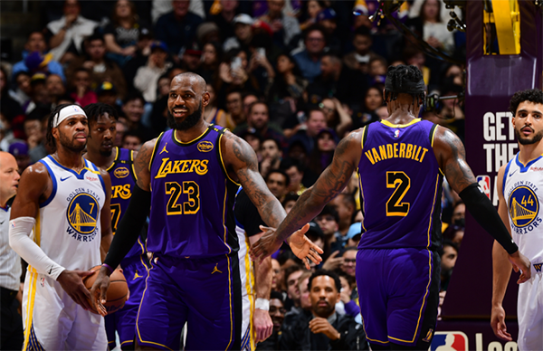 老詹两罚一中,库里接连打铁,里夫斯关键抛投得分,1分08秒老詹轰进制胜三分,如此一球太强硬,库里得分续命,老詹关键助攻,追梦吃T,老詹激情庆祝,最终带领湖人拿下胜利,赛季三杀勇士。