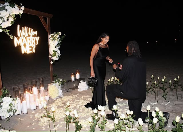 而在感情生活中,卢尼也迎来了人生的重要时刻。他精心布置了浪漫的求婚现场,单膝跪地,深情地为女友戴上了象征永恒爱情的钻戒。求婚成功后,卢尼与未婚妻MariahSimone甜蜜恩爱地亲吻,随后他在社交媒体上分享了这一幸福时刻,配文写道:“为我们的爱,永远!”这一消息迅速引发了广泛关注,勇士官方第一时间送上了祝福,球队当家球星库里以及年轻球员库明加也纷纷表达了对卢尼的祝贺,就连卢尼的前队友保罗等人也点赞送祝福,可见卢尼在联盟中的好人缘。