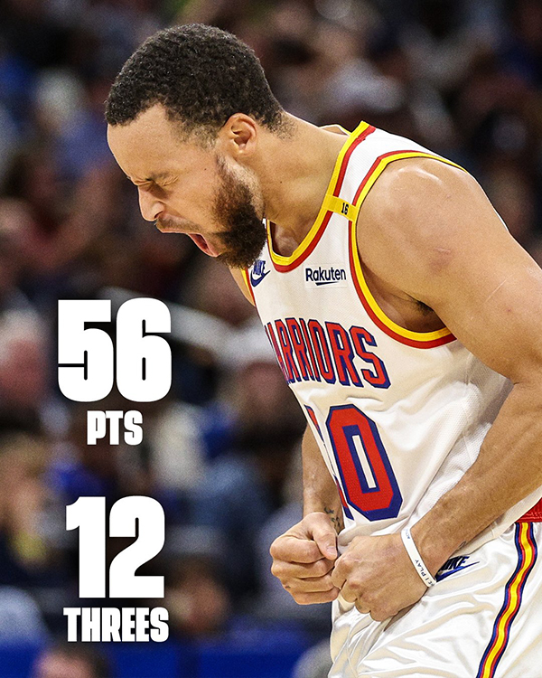 库里56分+12记三分狂刷12项纪录 客场球迷集体倒戈高呼MVP
