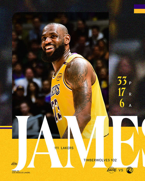 湖人险胜森林狼四连胜重返西部第四 詹姆斯33+17+6创历史 东契奇末节救赎仍自责