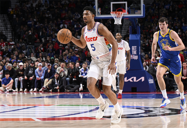 恩比德因膝盖伤势提前赛季报销,身穿便装坐在替补席观战,第一节76人和勇士打成30平,乔治首节3中1拿到3分4篮板2犯规,马克西5投0中一分未得,费城两大球星状态糟糕,24岁的格雷姆斯扛起费城的进攻大旗,首节5投5中轰下12分3篮板,扮演费城最粗大腿并且对飚库里。