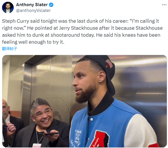 勇士输球赛后,谈到扣篮,库里接受采访时表示,这将是他在职业生涯中的最后一次扣篮,直言:这可能是我最后一次扣篮了,以后我将只会去上篮。为了这一扣,我竭尽了全力。