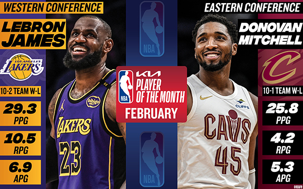 重磅!詹姆斯第41次当选月最佳成传奇,骑士双星同获大奖