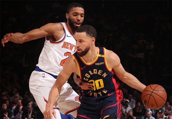 勇士客场挑战尼克斯,勇士8-2开场后被尼克斯反超比分,第二节进攻下滑并且被尼克斯拉开分差,半场打完勇士47-55落后8分;上半场库里登场17分钟,10投3中、三分3中1拿到8分3篮板3助攻,突破上空篮不中后十分沮丧;在进攻端,库里不仅被布里奇斯盯防,而且遭尼克斯夹击。
