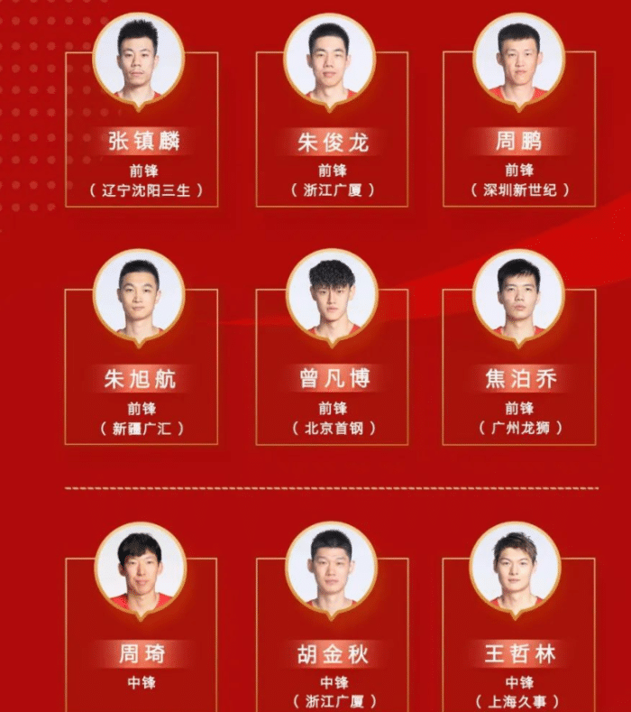 19日,中国男篮正式公布出征世预赛的16人名单,祝铭震和崔晓龙落选。按照安排,每场比赛前,乔尔杰维奇还要选择12人出场名单,16人依然面临激烈竞争。从具体名单看,内线周琦、王哲林和胡金秋承担重任,锋线周鹏和张镇麟领衔,朱俊龙、朱旭航、曾凡博和焦泊乔都很有冲击力,他们的国际比赛经验并不丰富,这次世预赛也是一次很好的学习机会。