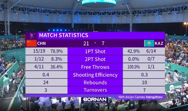 360直播吧讯 9月30日讯 亚运会女子三人篮球1/4决赛,中国女篮迎战哈萨克斯坦女篮。比赛开始,王馨雨外线2分先拔头筹,此后中国女篮发挥内线优势,轮番冲击篮筐拿分取得9-1的领先,对手打中一球艰难破荒,此后中国队命中率下降,双方陷入僵持,陈明玲补篮打破僵局,中国队多点开花不断扩大领先,王馨雨上篮一举拿下比赛。最终,中国三人女篮21-7击败哈萨克斯坦队,晋级4强。