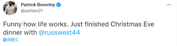贝弗利本人更是透露,他和威少一起共享平安夜晚餐。