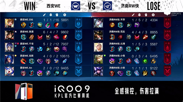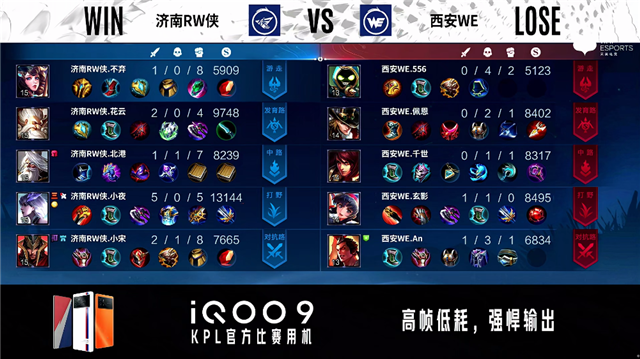 54秒,西安WE嬴政击杀弈星拿下一血。1分10秒,西安WE兰陵王击杀关羽。1分53秒,西安WE镜击杀弈星。2分08秒,西安WE控下先知主宰,随后济南RW侠控下暴君。3分钟,西安WE猪八戒击杀关羽。3分36秒,西安WE上路击杀关羽。5分52秒,西安WE破掉济南RW侠上二塔。6分21秒,西安WE控下先知主宰。7分29秒,西安WE破掉济南RW侠下二塔,随后团战济南RW侠打出1换2。7分58秒,济南RW侠控下暴君。8分47秒,西安WE破掉济南RW侠中一塔。10分17秒,西安WE控下暗影暴君。10分47秒,西安WE控下暗影主宰。11分27秒,西安WE下路打出0换2。11分53秒,西安WE破掉济南RW侠中二塔并击杀成吉思汗。12分12秒,西安WE破掉济南RW侠下、中高地。12分32秒,西安WE破掉济南RW侠上高地并打出0换2。12分42秒,西安WE摧毁济南RW侠水晶,让二追三赢下比赛!