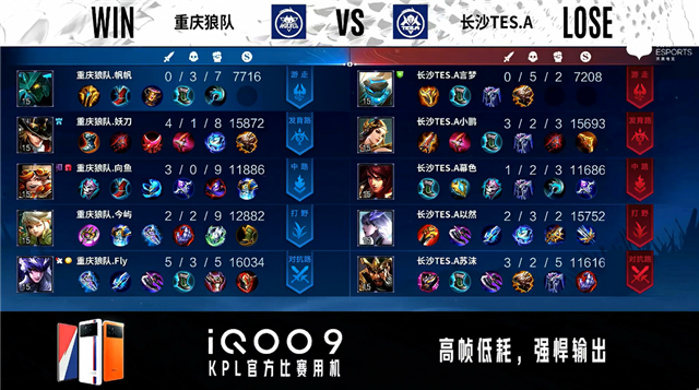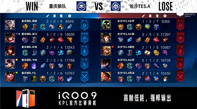 2分31秒长沙TES.A关羽对抗路单杀马超拿到一血。5分20秒长沙TES.A拿下主宰。7分16秒重庆狼队摧毁敌方中路外塔并击杀盾山。7分40秒长沙TES.A暴君处击杀阿古朵。8分07秒野区团战重庆狼队打出2换3。9分36秒重庆狼队拿下暴君,长沙TES.A拿下主宰。10分17秒长沙TES.A主宰处击杀马可波罗。10分40秒长沙TES.A拿下暗影主宰。12分40秒重庆狼队击杀盾山并拿下暗影暴君。13分19秒重庆狼队发育路击杀关羽。13分39秒重庆狼队摧毁敌方发育略让他。13分50秒重庆狼队摧毁敌方中路二塔。15分18秒重庆狼队中路击杀镜。15分37秒重庆狼队摧毁敌方中路高地塔。15分50秒重庆狼队摧毁敌方发育路高地塔。17分18秒重庆狼队摧毁敌方对抗路二塔。18分21秒重庆狼队拿下暗影暴君。19分45秒高地团战双方2换2。21分54秒中路团战重庆狼队打出1换3。22分50秒重庆狼队强点水晶拿下比赛。