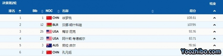 最终,徐梦桃以108.61的成绩夺得金牌!孔凡钰排名第六。