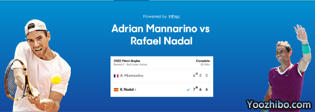 - 【赛事名称】: 2022澳网男单第4轮 曼纳里诺vs纳达尔 全场录像回放