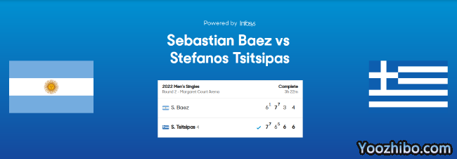 - 【赛事名称】: 2022澳网男单第2轮 巴埃斯vs西西帕斯 全场录像回放
