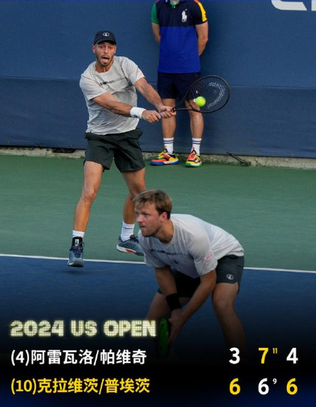 - 【赛事名称】: 2024美网男双半决赛 阿雷瓦洛/帕维奇vs克拉维茨/皮茨 全场录像回放