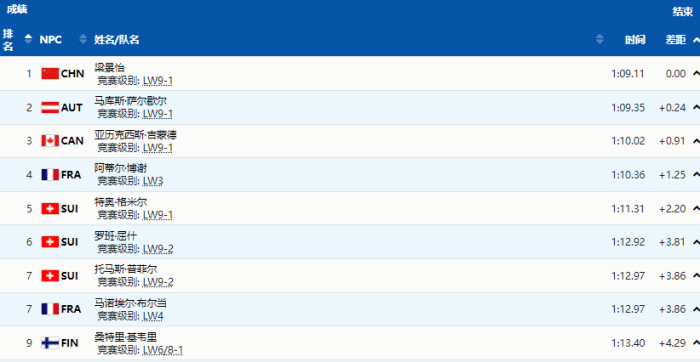 梁景怡为中国队夺得第6枚金牌,在北京冬残奥会高山滑雪男子超级大回转站姿组比赛中,夺得金牌,成绩是1分09秒11,这也是中国队在该项目的历史最好成绩,梁景怡书写了属于自己的历史。