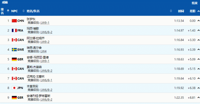 这其中为中国队斩获第3金的是河北衡水的张梦秋,作为中国残奥高山滑雪项目的领军人物,张梦秋在高山滑雪女子超级大回转-站姿的比赛中展现出了超强的实力,她领先第二名超过1秒,领先铜牌选手3秒,最后以1分13秒54的成绩获得金牌。昨天张梦秋拿下一枚银牌,以0.1秒之差丢金,今天的比赛,这位河北的姑娘弥补了自己的不足,成功拿下金牌,恭喜。