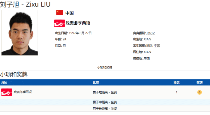 来到北京冬残奥会,刘子旭报名了冬季两项男子短距离坐姿、冬季两项男子中距离坐姿、冬季两项男子长距离坐姿三个项目。在自己的首个项目冬季两项男子短距离坐姿中,刘子旭就力压群雄,成功拿下金牌,这也是他职业生涯中第一枚冬残奥会金牌,也是中国队在冬残奥会雪上项目的历史首金。