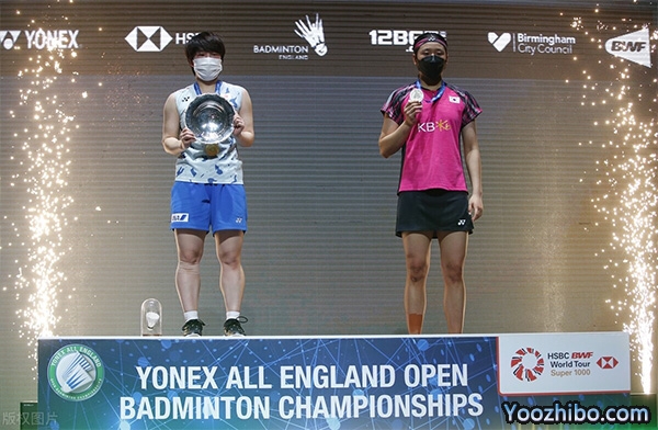 360直播吧讯 3月20日,2022年世界羽联巡回赛超级1000全英公开赛进入决赛日争夺,在首场女单决赛中,日本名将山口茜对决韩国天才少女安洗莹,最终山口茜以21-15、21-15,连下两局,大比分2-0取胜,首次夺得全英赛女单冠军。这是继去年世锦赛之后,山口茜夺得又一个重磅头衔冠军。