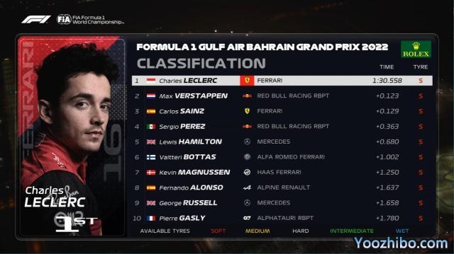 2022F1巴林大奖赛排位赛成绩表