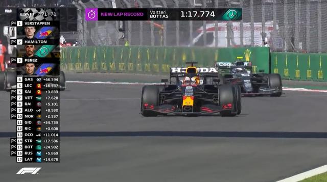 最后一圈,博塔斯从维斯塔潘手中抢走了最快圈速。
