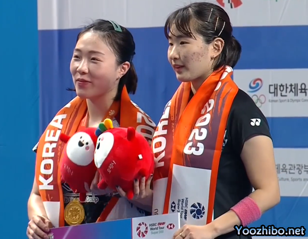 360直播吧讯北京时间11月12日,2023韩国羽毛球大师赛女双决赛广上瑠依/加藤佑奈vs郑那银/金慧贞 。郑那银/金慧贞以2-0击败广上瑠依/加藤佑奈,获得冠军。比分为21-12、21-19。