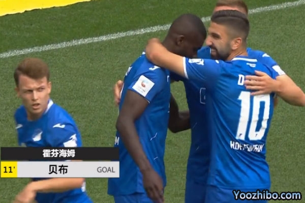 第11分钟,斯托夫左路传中,贝布拿球晃过对方门将后轻松推射空门得手,霍芬海姆领先,1-0!