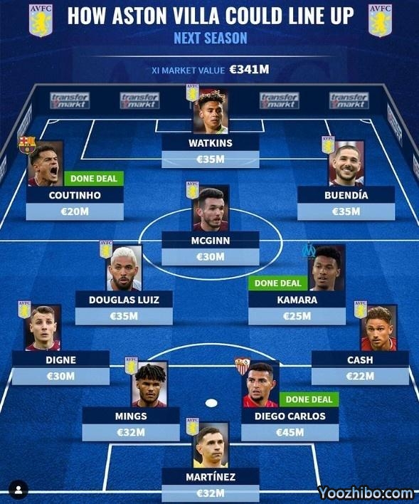 来源:360直播吧05-28 17:00360直播吧05月28日讯 近日,维拉在转会市场十分活跃,在2周内连续官宣3笔强援。对此,《转会市场》预测了他们下赛季的首发阵容。