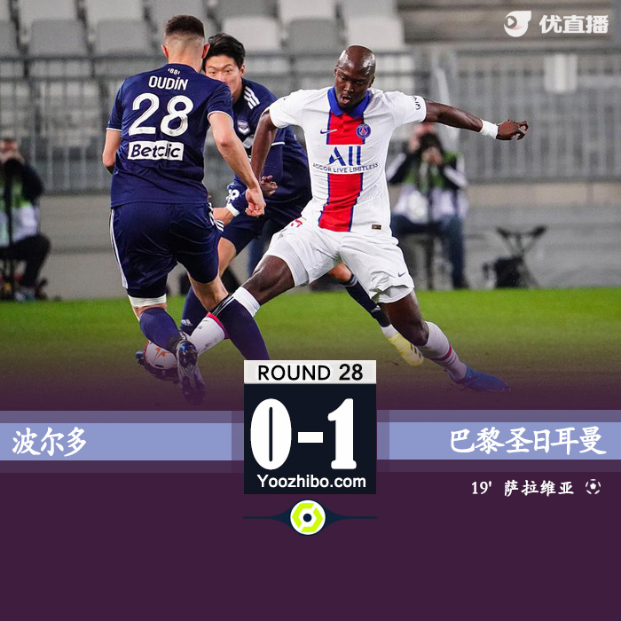 巴黎圣日耳曼1-0波尔多 盖耶送助攻萨拉维亚低射制胜