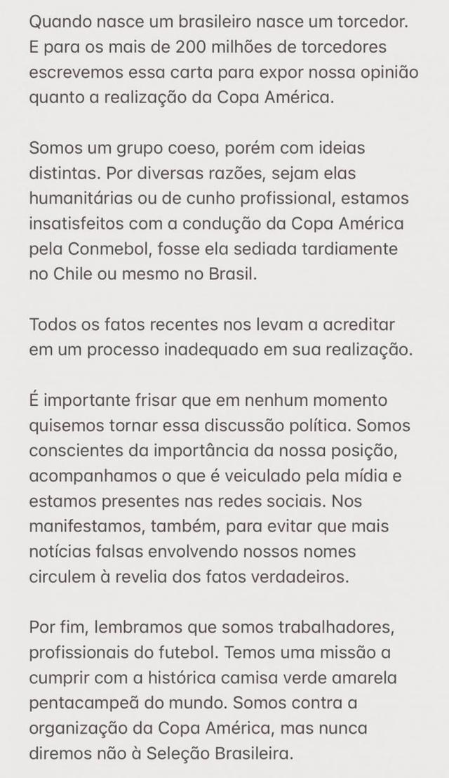 360直播吧讯 今日,内马尔、阿利森、卡塞米罗等多名巴西球员发表公开信,表示反对本届美洲杯的赛事。