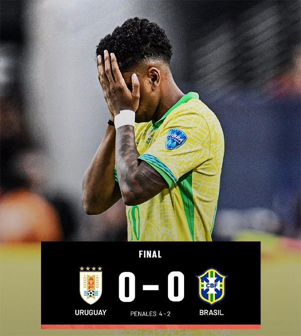 点球大战,巴西球员表现更是令人失望。队长米利唐带头第1个罚丢。此外,道格拉斯-路易斯也没能命中。因此尽管门神阿里松神勇扑出希门尼斯的点球,依然难以挽救巴西。