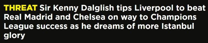 来源:360直播吧04-02 19:30360直播吧讯 近日,利物浦传奇肯尼-达格利什爵士在接受talksport采访时表示,如果利物浦能击败皇马就有机会晋级欧冠决赛,并且他为球队抽签能够避开曼城和拜仁感到高兴。