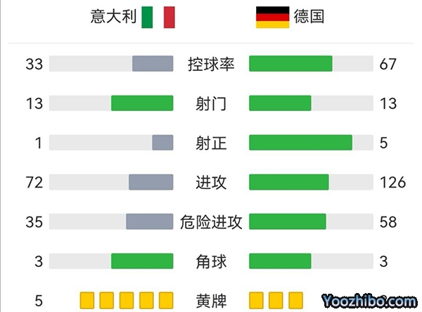 全场比赛结束,意大利1-1德国。