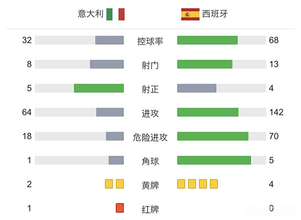 全场比赛结束,西班牙2-1击败意大利,进入欧国联决赛。