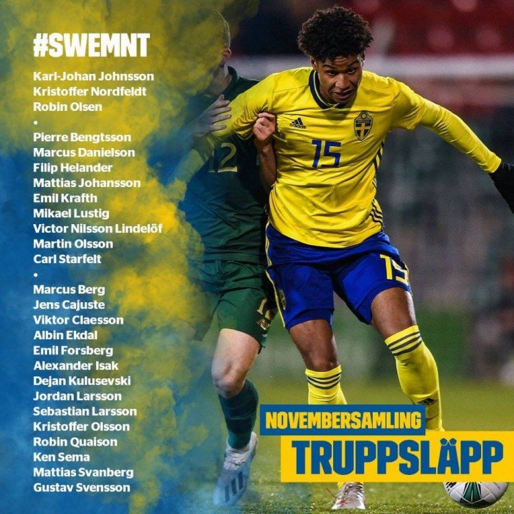 日前,老将伊布在社交媒体晒出身穿国家队队服的照片,引发外界猜想,不过根据本份名单来看,伊布回归似乎并不在主教练简尼·安德森的计划当中。