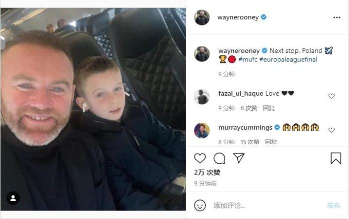 传奇主帅弗格森已随队出征,今日,曼联传奇球员鲁尼晒出与孩子合照,并写道:“下一站,波兰✈