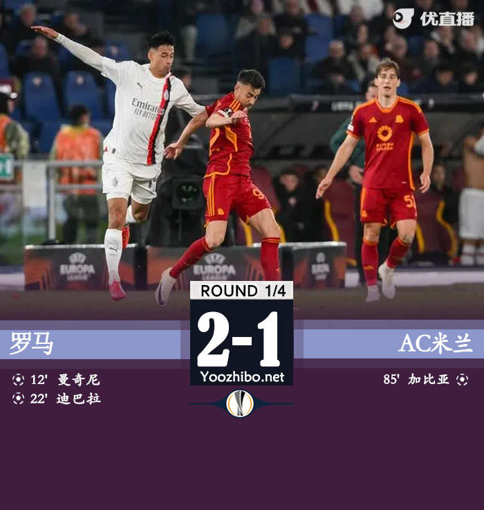 罗马2-1米兰 迪巴拉曼奇尼破门切利克直红