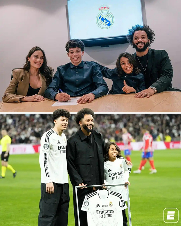 马塞洛的儿子恩佐-阿尔维斯司职前锋,他在皇马青训系统中表现出色,自2017年加入以来,他在U17梯队中迅速崭露头角,曾在18场比赛中打入24球,已成为球队的关键球员。